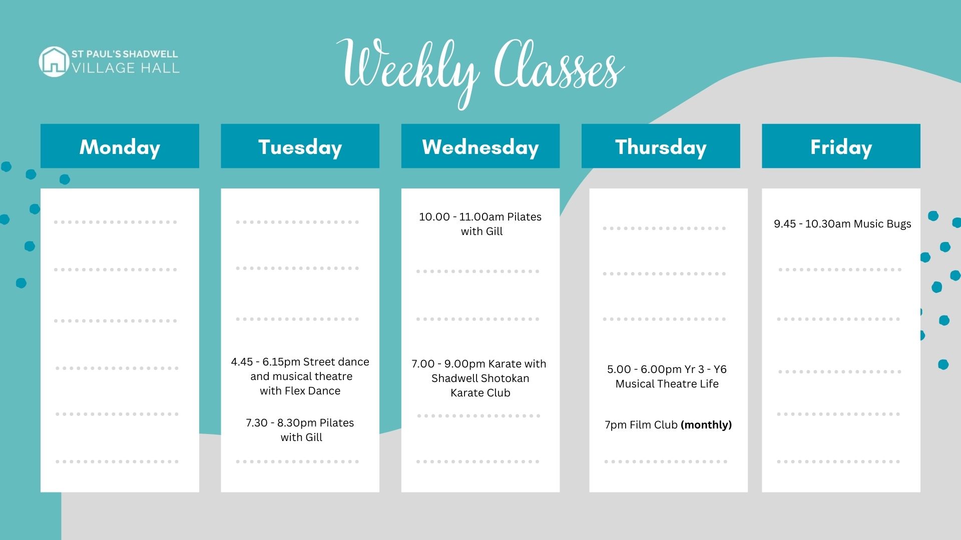 St Paul’s Shadwell Village Hall is situated in the heart of the village, just off Main Street, offering a flexible events space for weekly / monthly classes or clubs, family celebrations and community events.